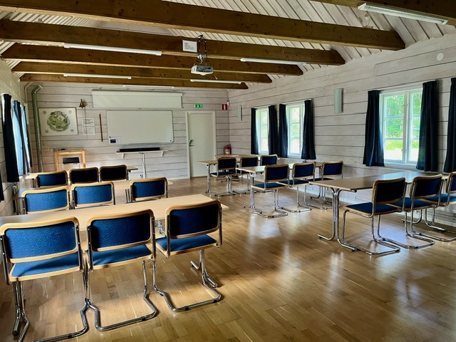 2. Gällarpsstugan: storstugan med vidstående sammanträdesrum, för cirka 15 personer i varje rum.